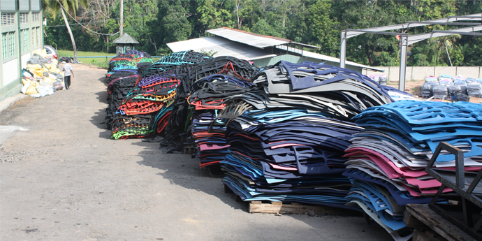 Souls Thong production uses up to 25% recycled rubber material in their construction which has been recycled at our manufactures’ on site recycling plant. All rubber material used to produce Souls Thongs is sourced from the natural rubber plantations of Sri Lanka. The offcuts leftover from the manufacturing process is recycled through the on-site recycling facility to make more Souls Thongs and other rubber type products.