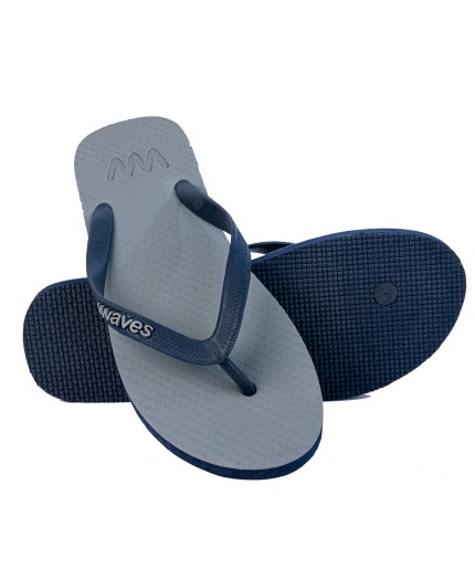 our Navy/Greycolored flip flops will fit right in at the pool or beach. These men flip flops are made with durable thong straps and anti-slip bottoms that provide traction while walking on wet ground. The flip flops feature natural rubber soles that mold to your feet for cushiony comfort you can walk on all day. Every pair of Waves flip flops is handcrafted from eco-friendly, recyclable rubber so you can feel good about your purchase.